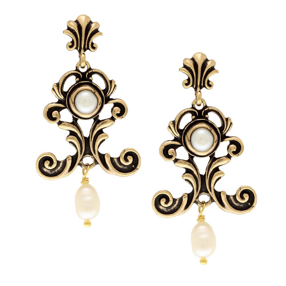 Earrings made entirely by hand from gold-plated brass. Sinuous lines and refined details evoke the sumptuousness of chandeliers, bringing light, movement and timeless elegance to the wearer.