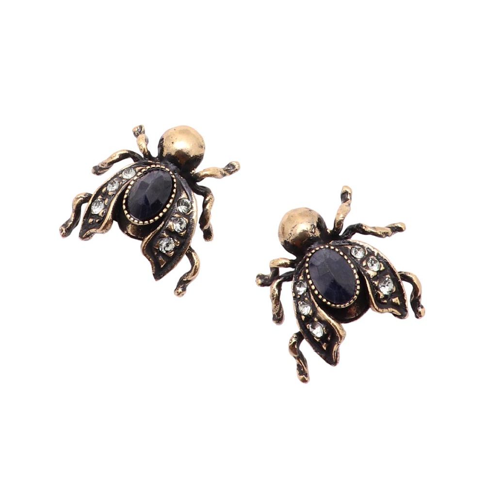 Pierced earrings of gold-plated brass with flies embellished by rhinestones and turquoise paste – Dimension H 1,1cm L 1,1cm