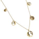 Golden brass necklace with moon and pearl pendant. Elegant Made in Italy costume jewelery to be fashion. Size H 2cm L 2cm Chain 45cm.